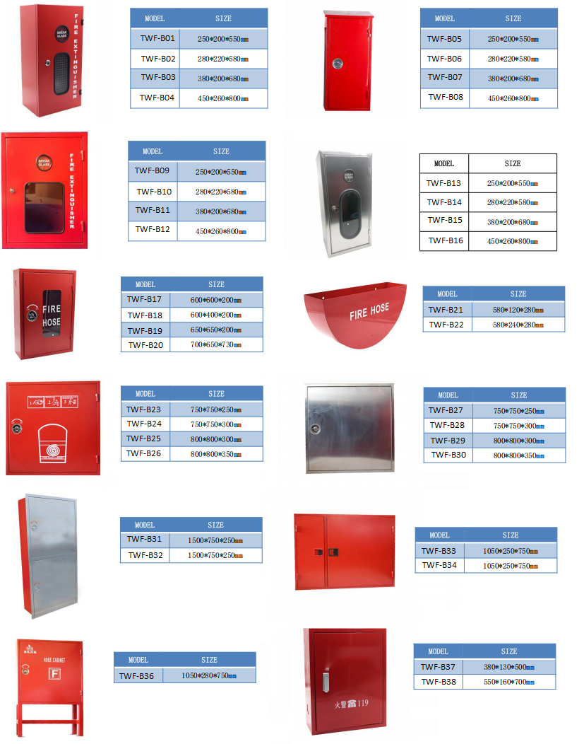 Capacity for : fire hose reel, flat hose, fire extinguisher,hydrant...